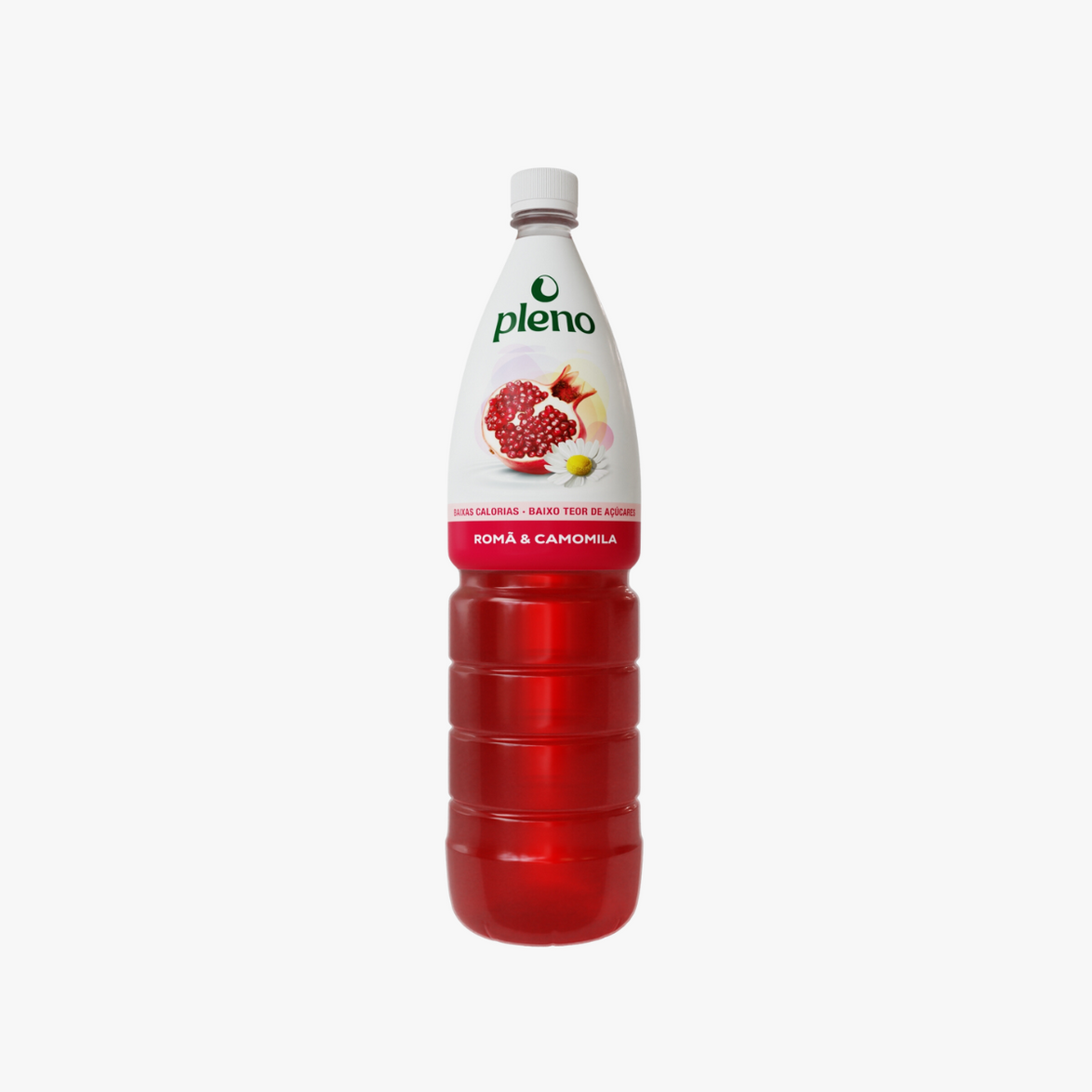 Bebida refrigerante de extrato de camomila com romã. Contém açúcar e edulcorantes.